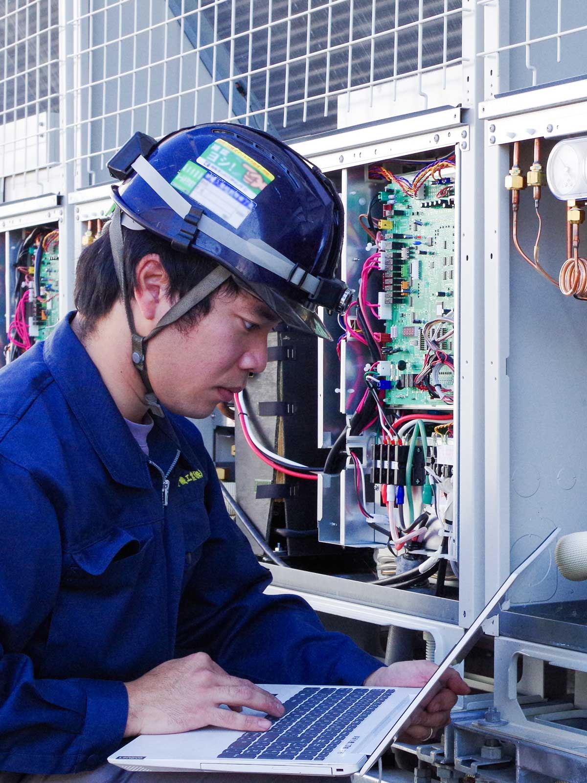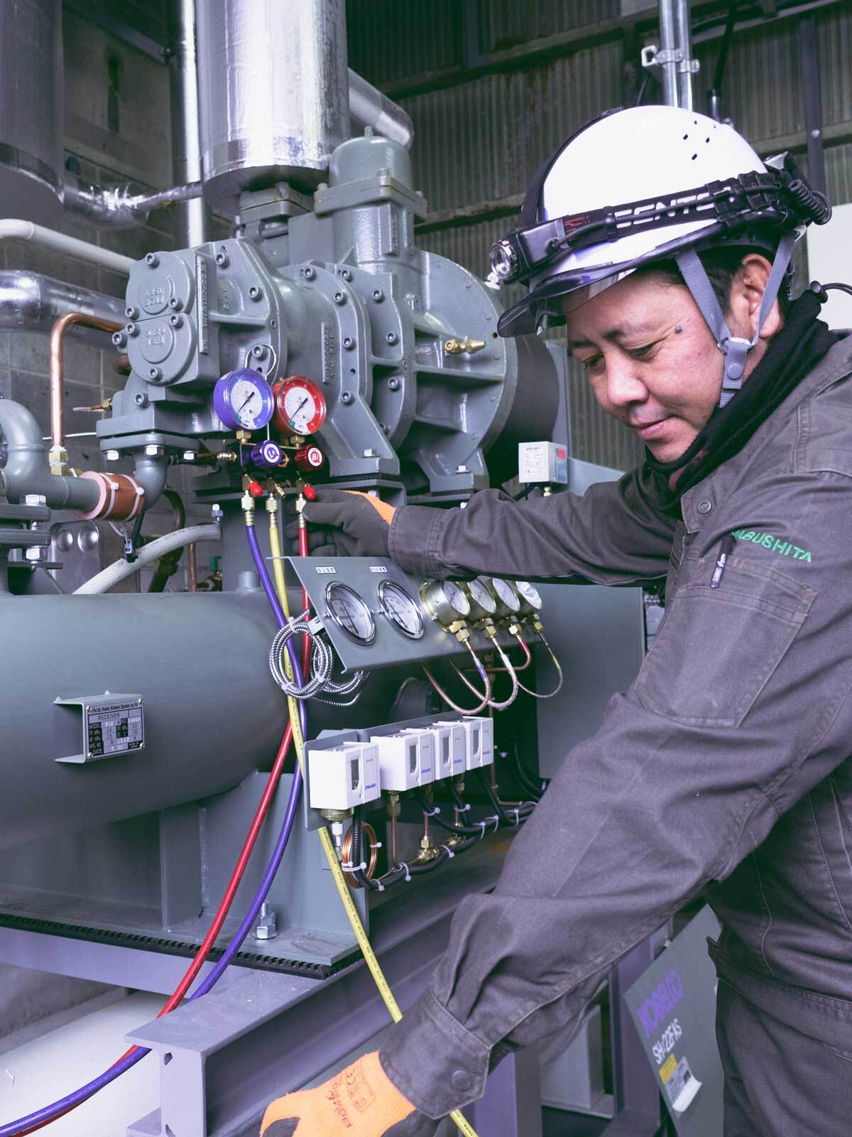 最新の冷凍・空調機から長い間稼働している旧型の設備まで、機械を知り尽くしたプロフェッショナルとして様々なお客様の状況に対応できるように技術を積み重ねています。